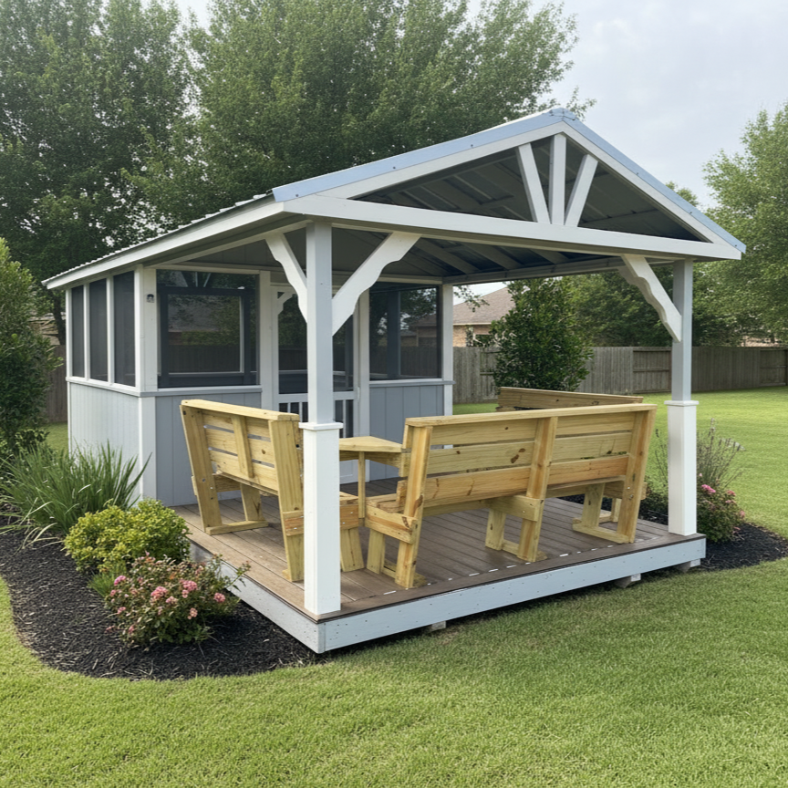 Okeechobee Storage Solutions now offers beautifully crafted gazebos and outdoor living spaces designed to enhance any backyard. Whether you’re looking for an Octagon, Oblong, or Rectangle Gazebo, we can provide the perfect fit for your space and style. Our screen rooms are the ideal solution for hosting backyard BBQs, birthday parties, or family gatherings—keeping food protected and pests out while you enjoy the fresh air. For year-round comfort, our hand-built sun rooms let you enjoy the feeling of being outdoors in every season. Contact Okeechobee Storage Solutions today to design the perfect outdoor space for your home.